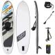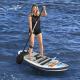 Contenu : planche, pagaie, pompe à main, sac à dos, plomb enroulé, aileron central, kit de réparation.