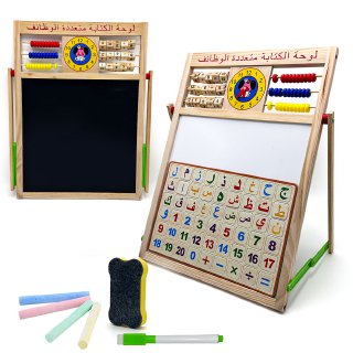 امنح طفلك تجربة تعلم ممتعة وتفاعلية مع السبّورة التعليمية الخشبية الثنائية! تجمع بين جانب أبيض مغناطيسي وجانب أسود تقليدي للكتابة بالطباشير، مما يجعلها الأداة المثالية لتشجيع الإبداع وتطوير المهارات التعليمية المبكرة.